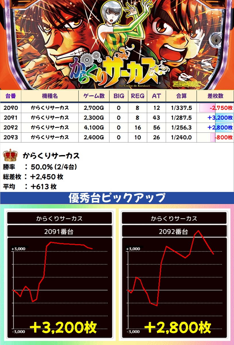 からくりサーカス(2/4台+) ➡平均 +613枚