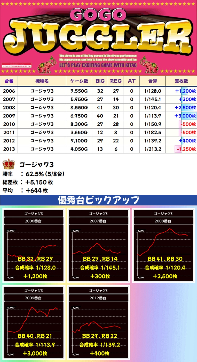 ゴージャグ3(5/8台+) ➡平均 +644枚