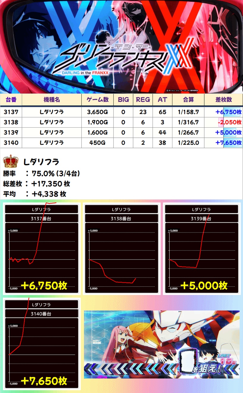 Lダリフラ(3/4台+) ➡平均 +4,338枚