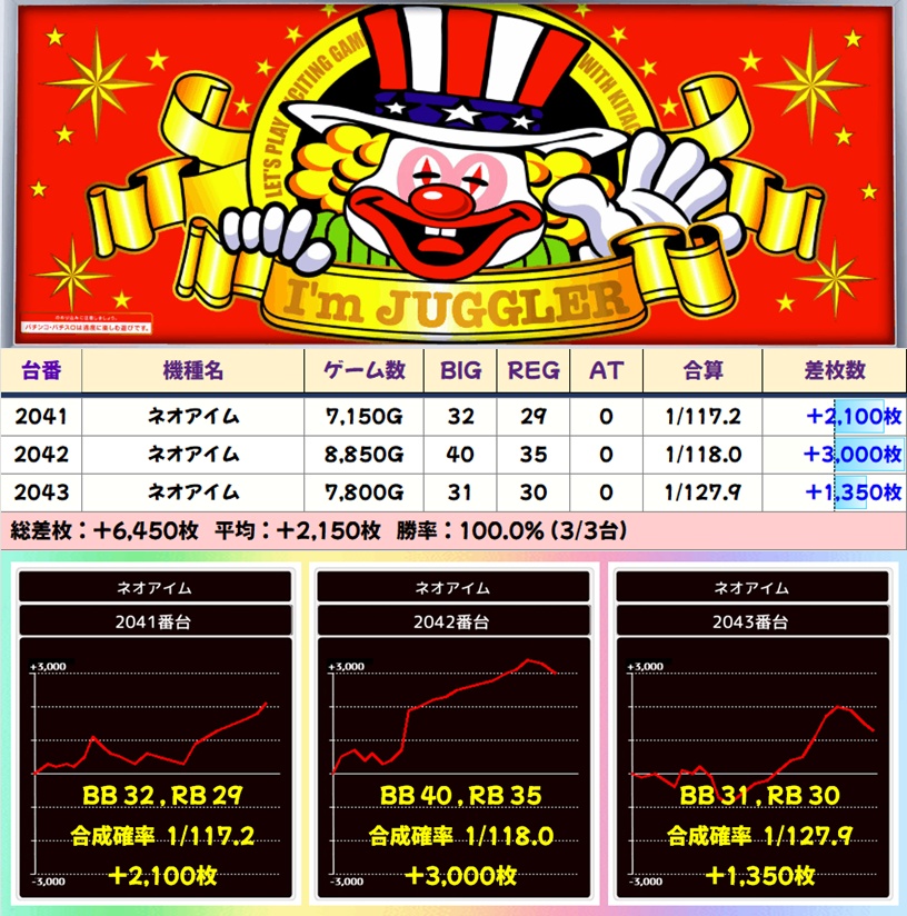 【並び①】ネオアイム(2041-2043番台)➡平均 +2,150枚