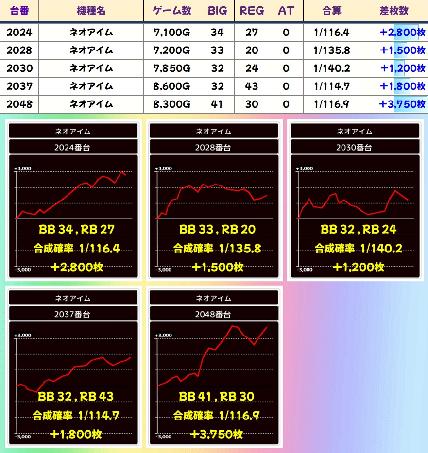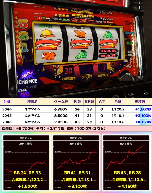 【並び②】ネオアイム(2044-2046番台)➡平均 +2,917枚