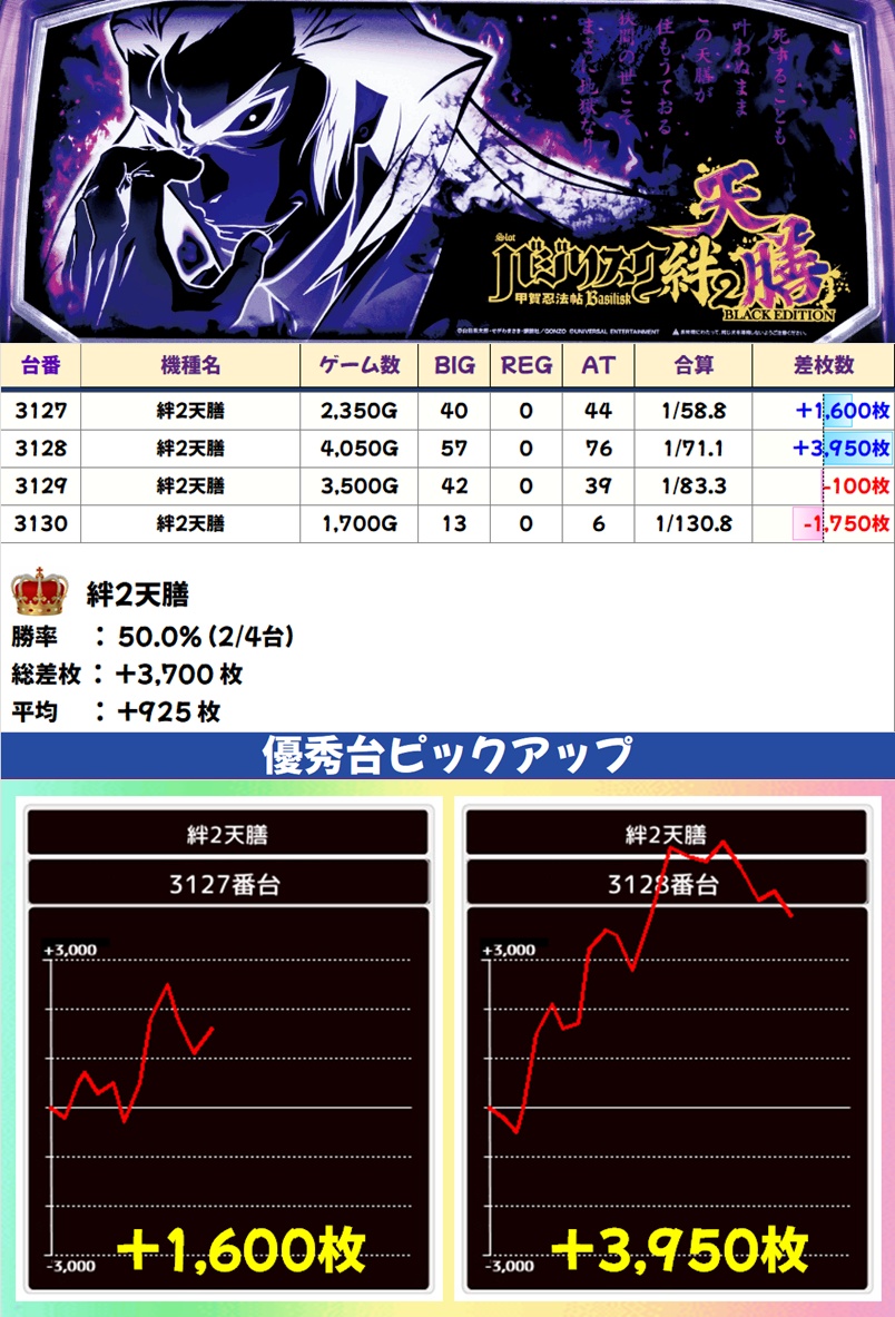 絆2天膳(2/4台+) ➡平均 +925枚