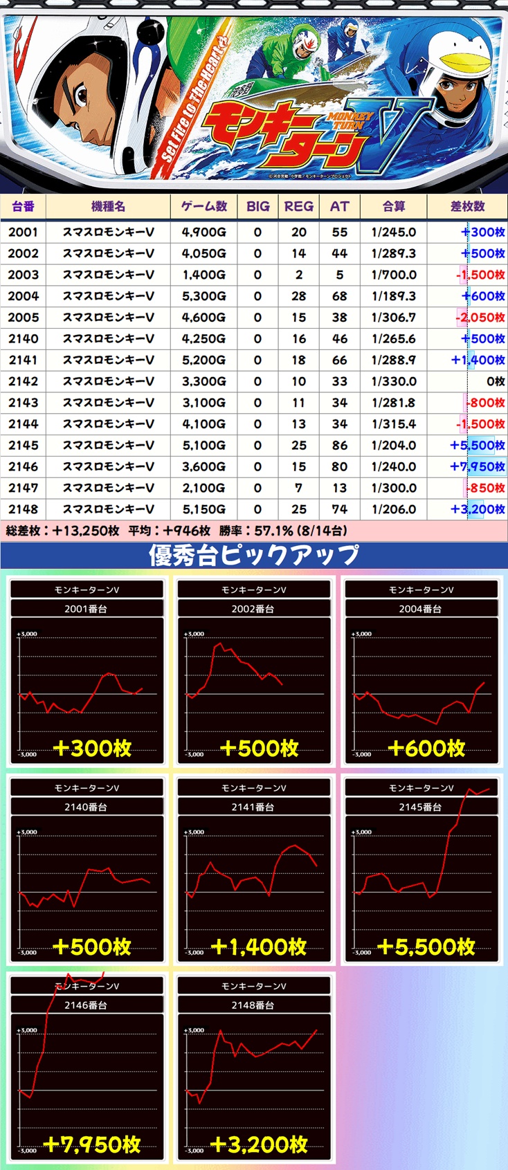 スマスロモンキーV(8/14台+) ➡平均 +946枚