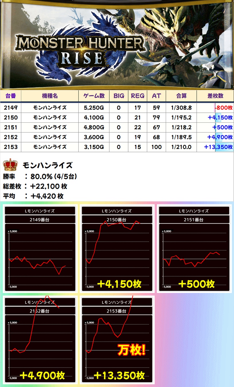 モンハンライズ(4/5台+) ➡平均 +4,420枚