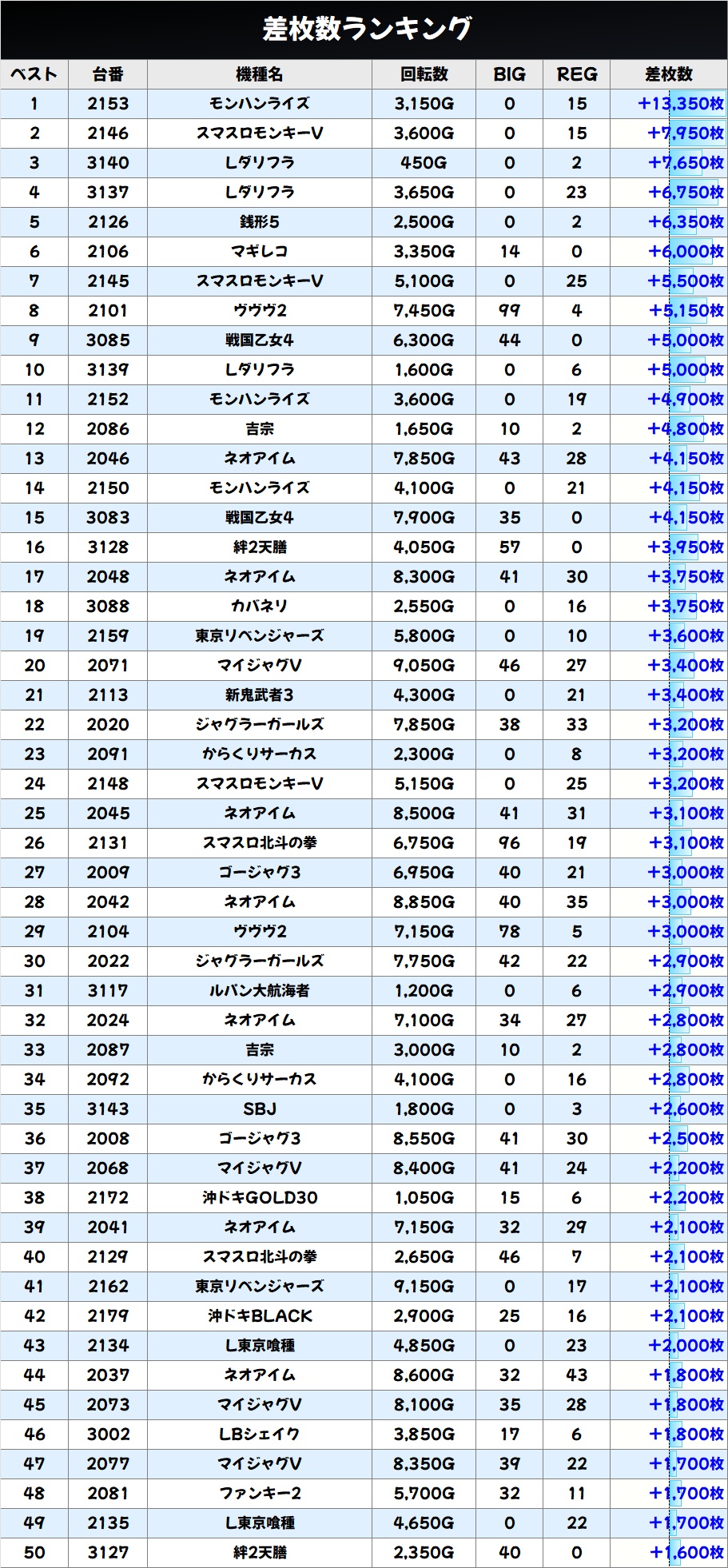 差枚数ランキングBEST50