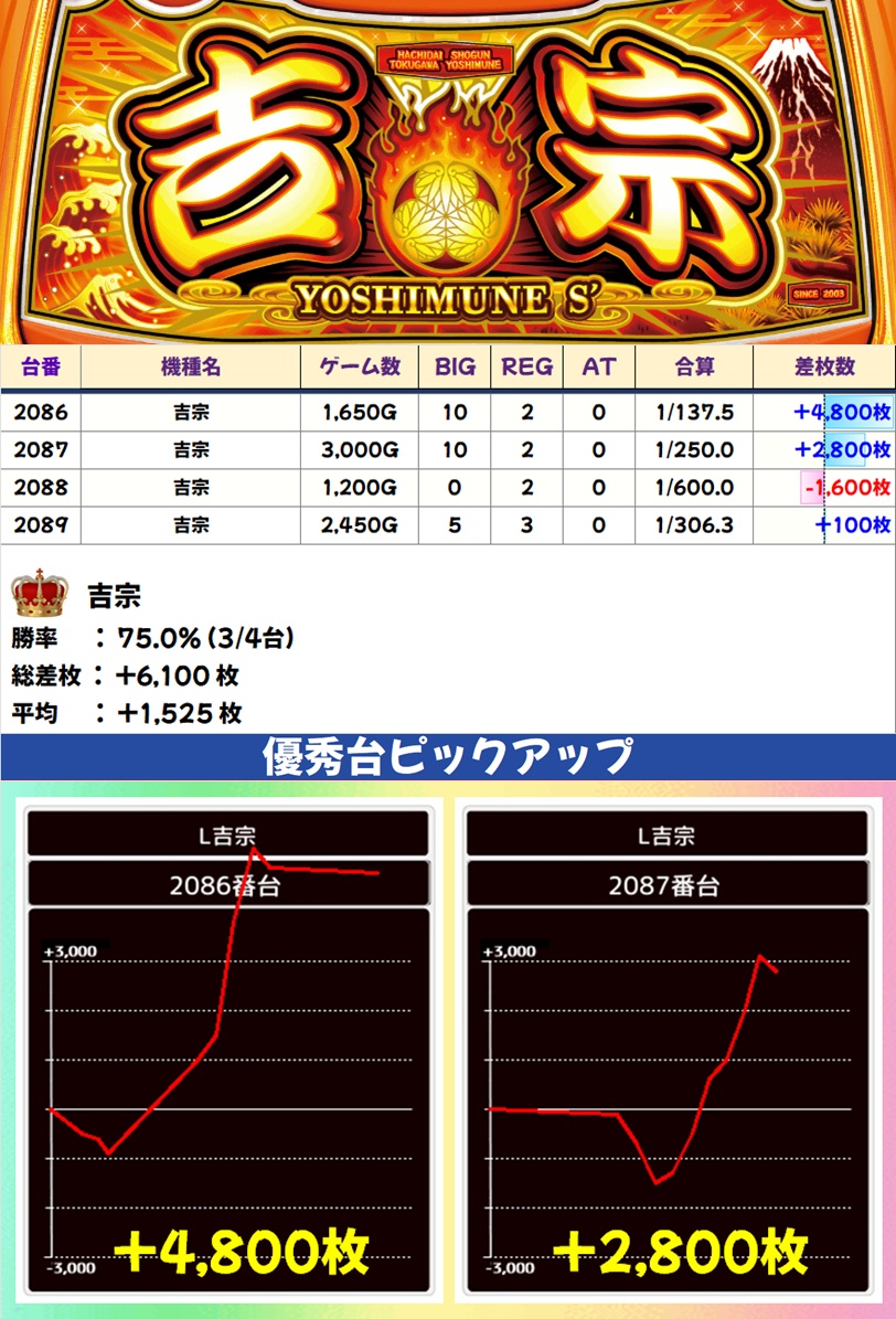 吉宗(3/4台+) ➡平均 +1,525枚