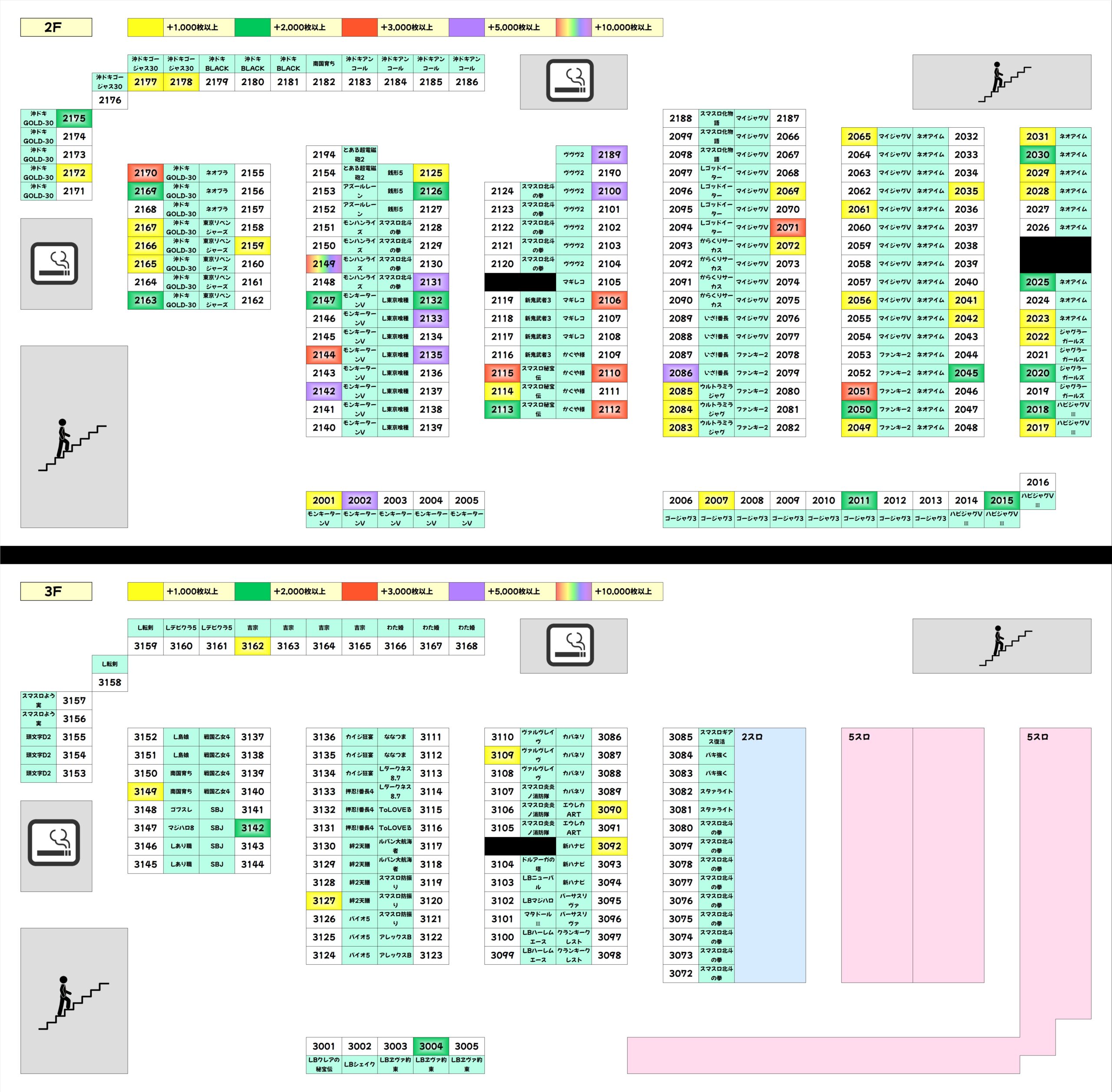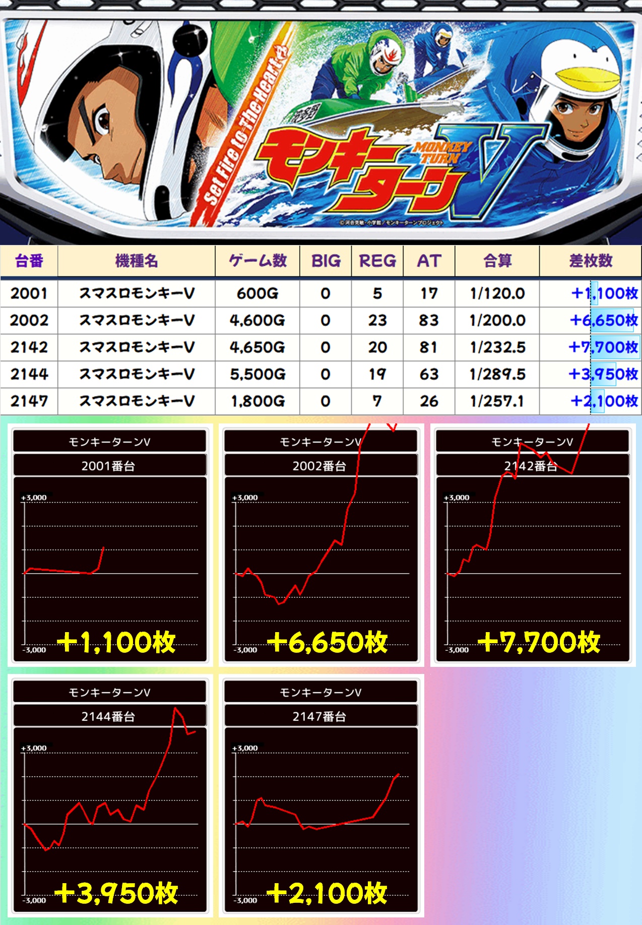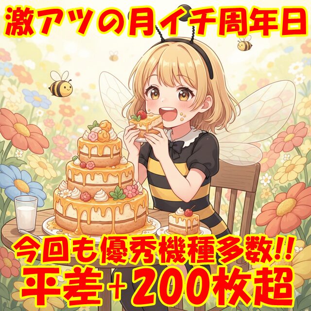 今回は+2,000枚オーバー台が30台以上出現し、そのうち9台が+5,000枚オーバーを記録。稼働が鈍いエリアもありましたが、これだけ出ていれば周年日にふさわしい結果だったと言えるのではないでしょうか。