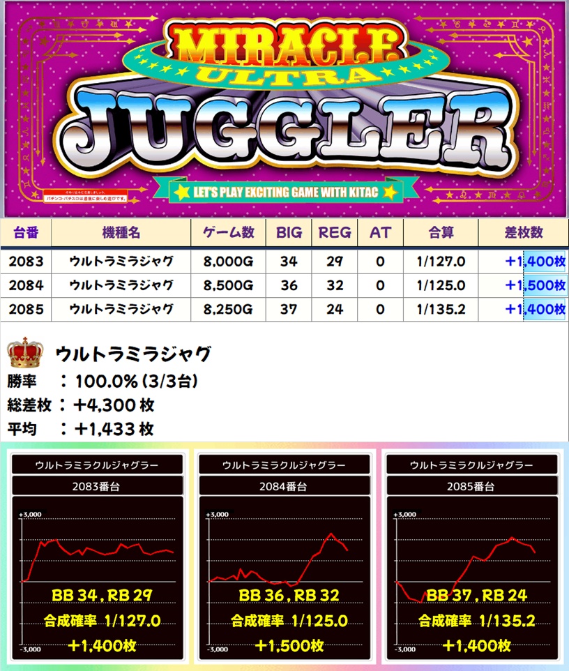 ウルトラミラジャグ(3/3台+) ➡平均 +1,433枚