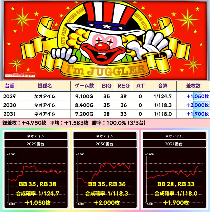 【並び】ネオアイム(2029-2031番台)➡平均 +1,583枚