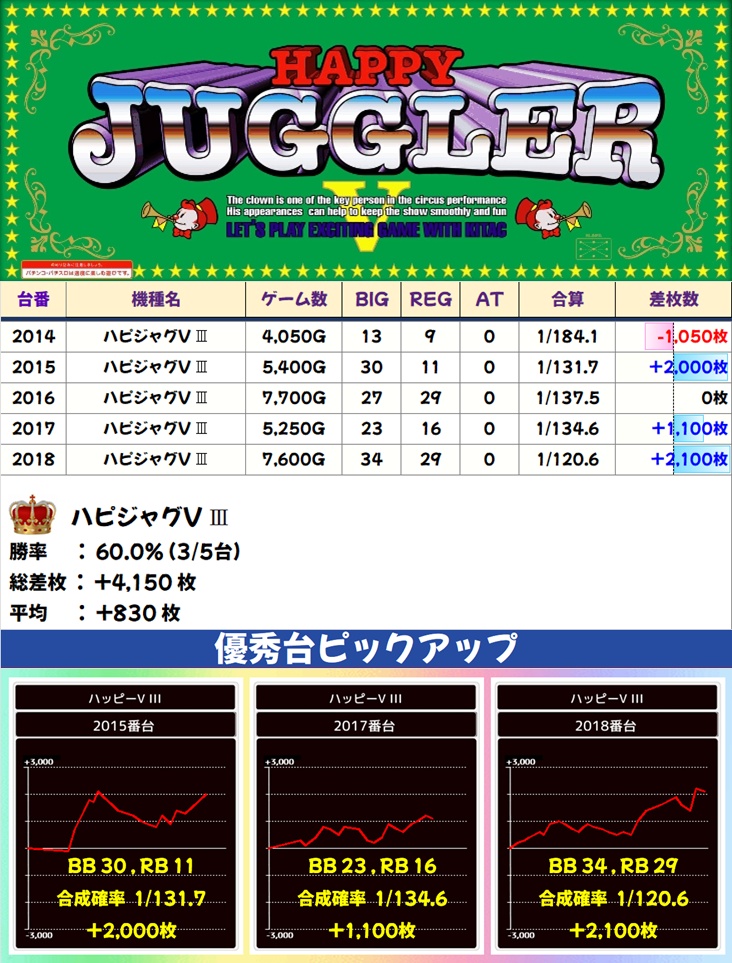 ハピジャグV(3/5台+) ➡平均 +830枚