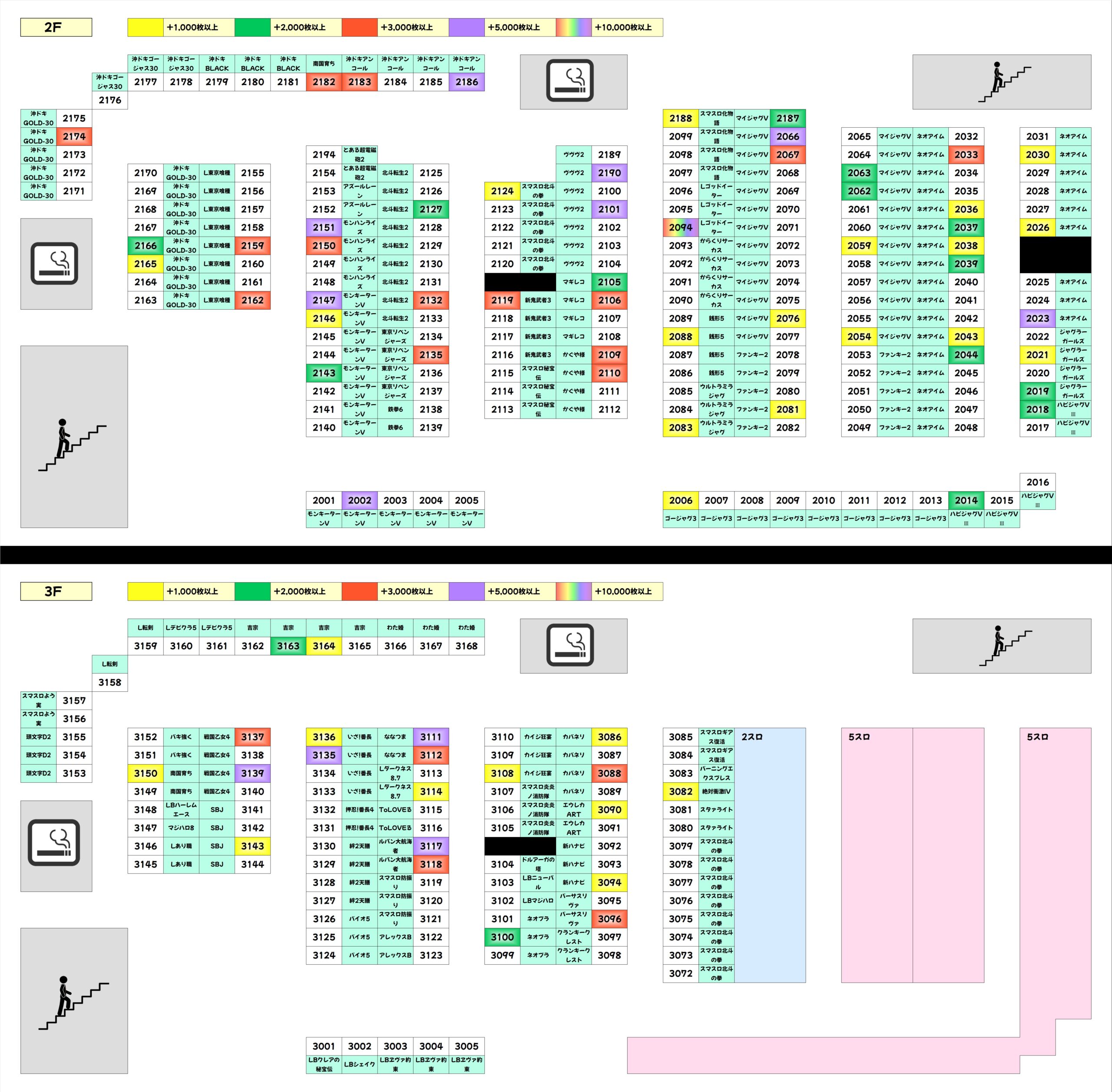 全台系濃厚機種は少台数機種から頻出しており、各フロアに複数あるという傾向もあります。2Fだけでなく3Fも狙い目になるので見逃せません!