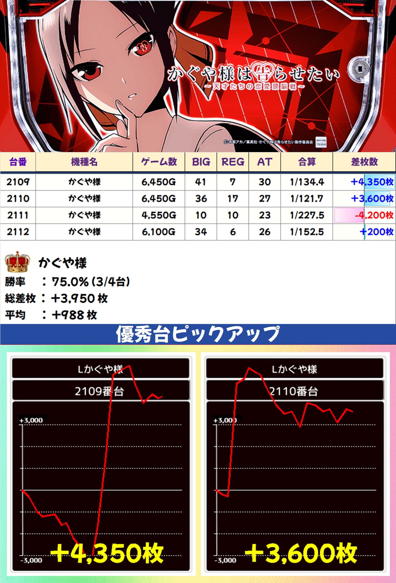 かぐや様(3/4台+)➡平均+988枚