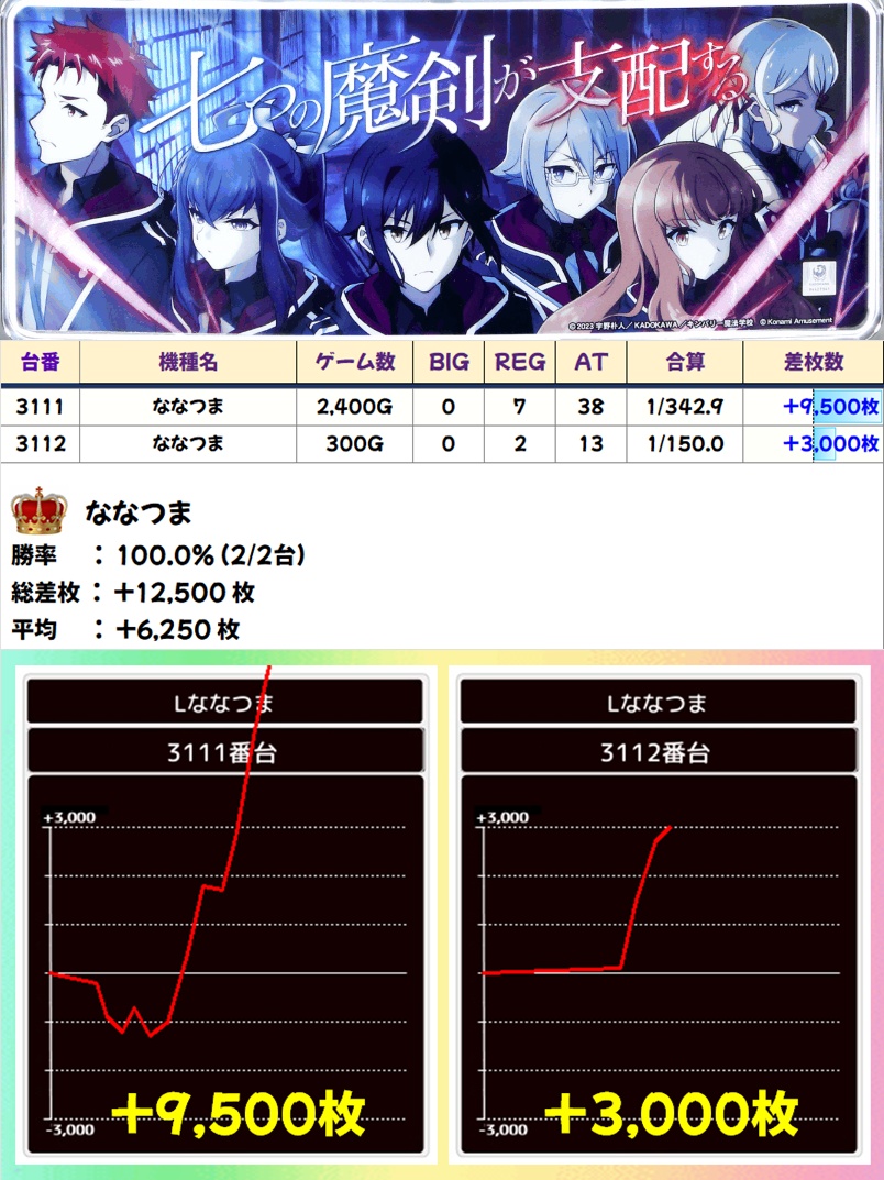 ななつま(2/2台+)➡平均+6,250枚