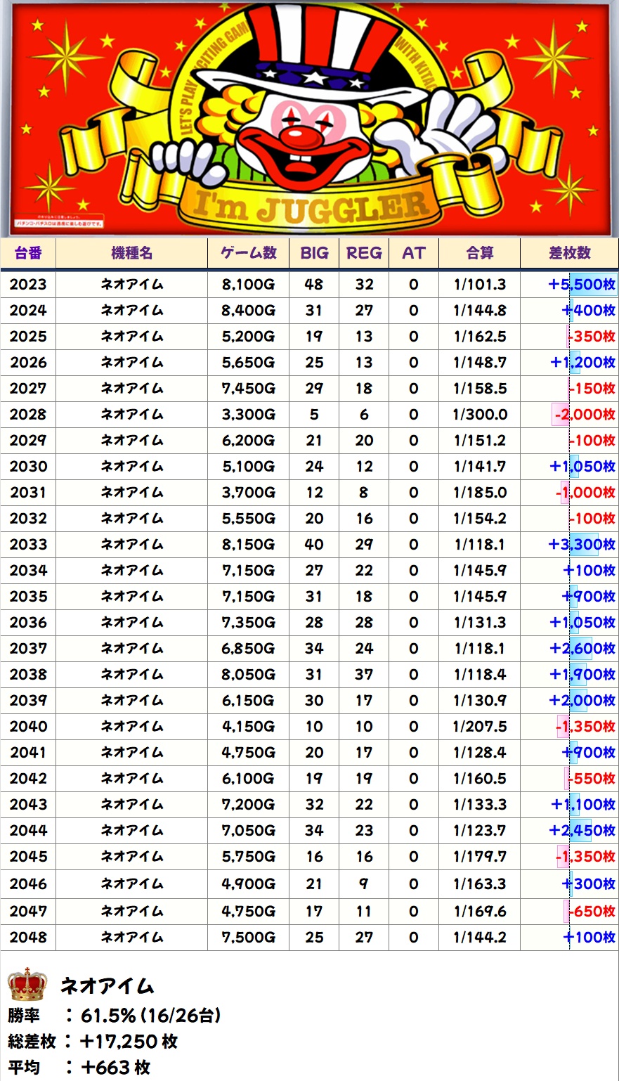 【1/2系濃厚】ネオアイム(16/26台+)➡平均+663枚