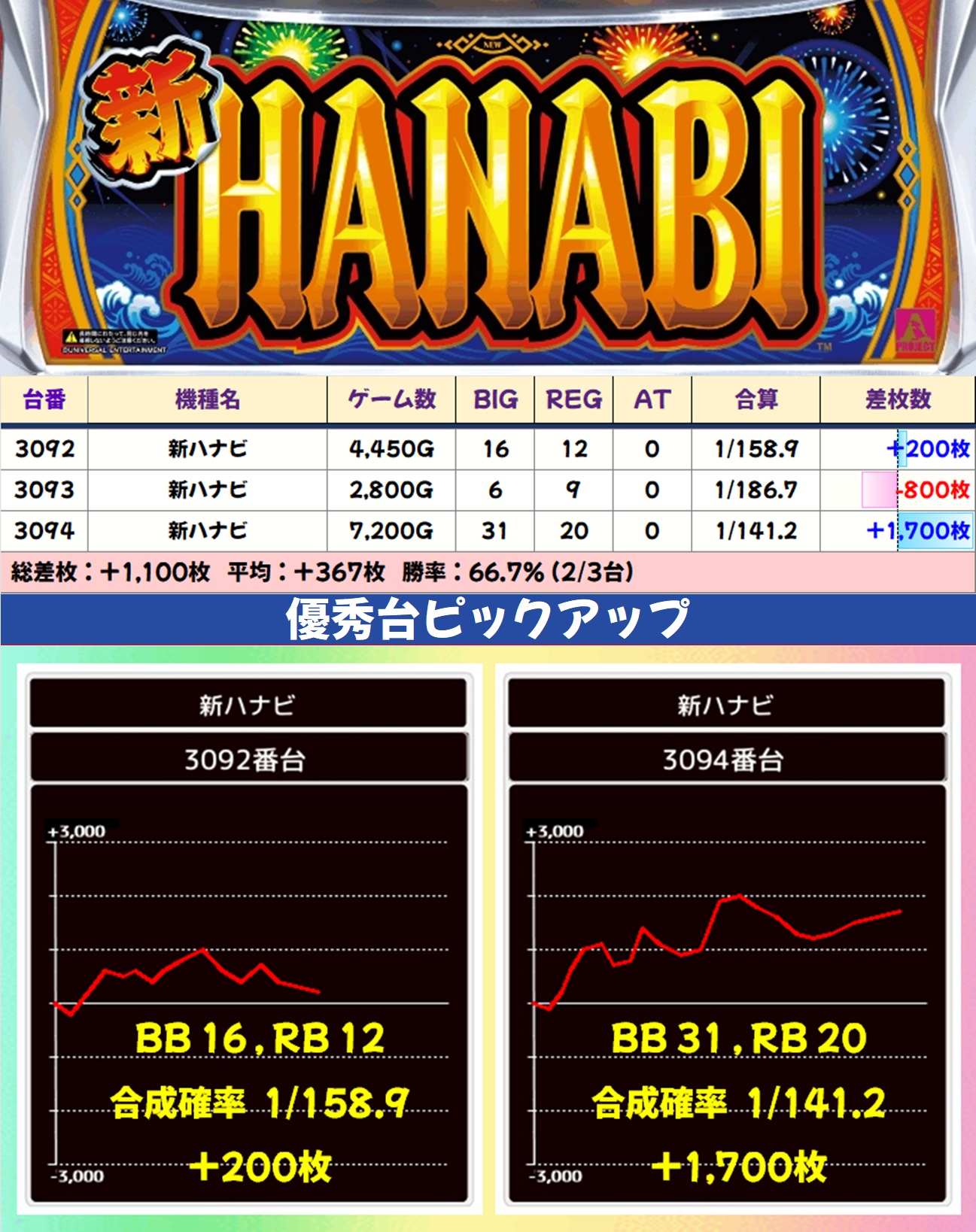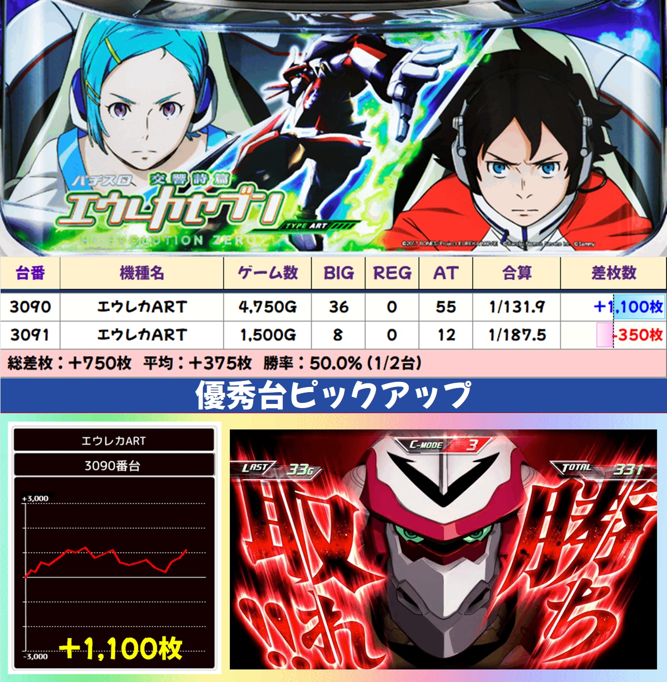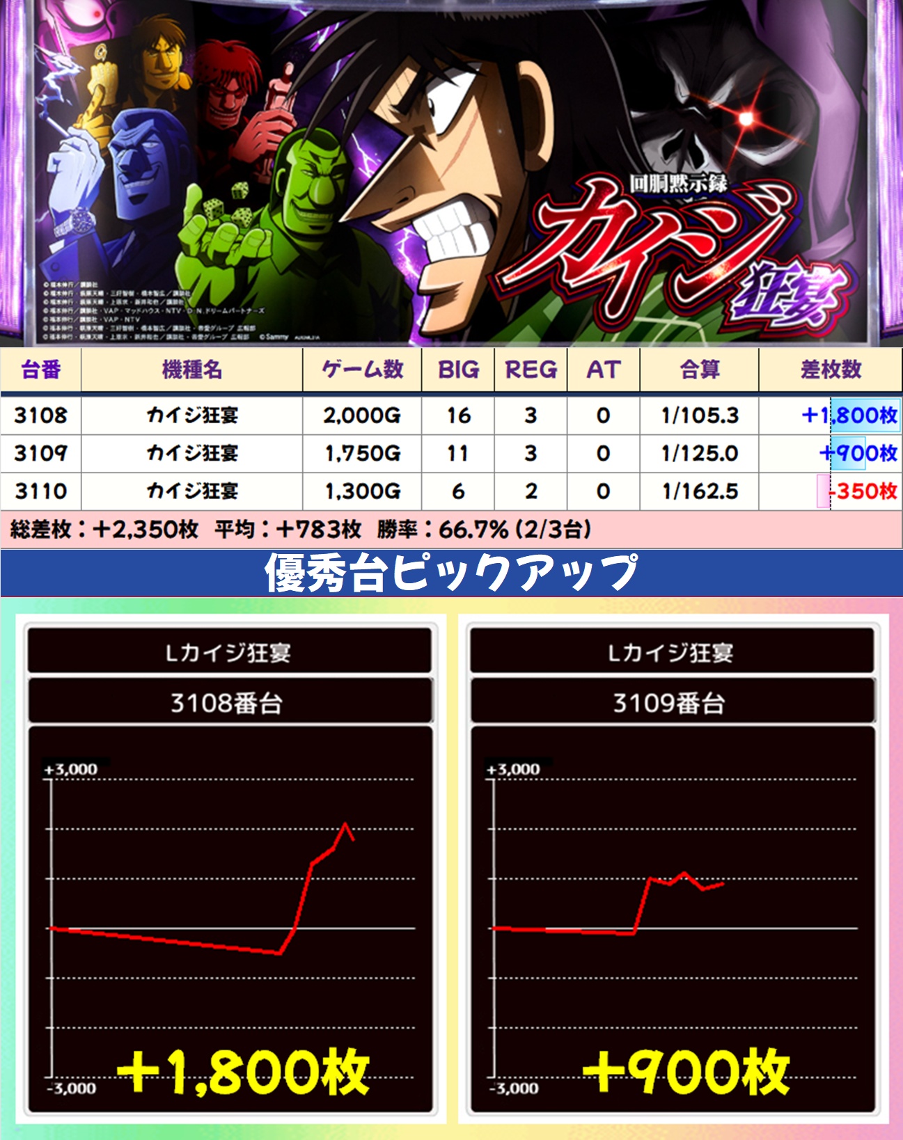 今回も平均差枚+150枚オーバーの好成績