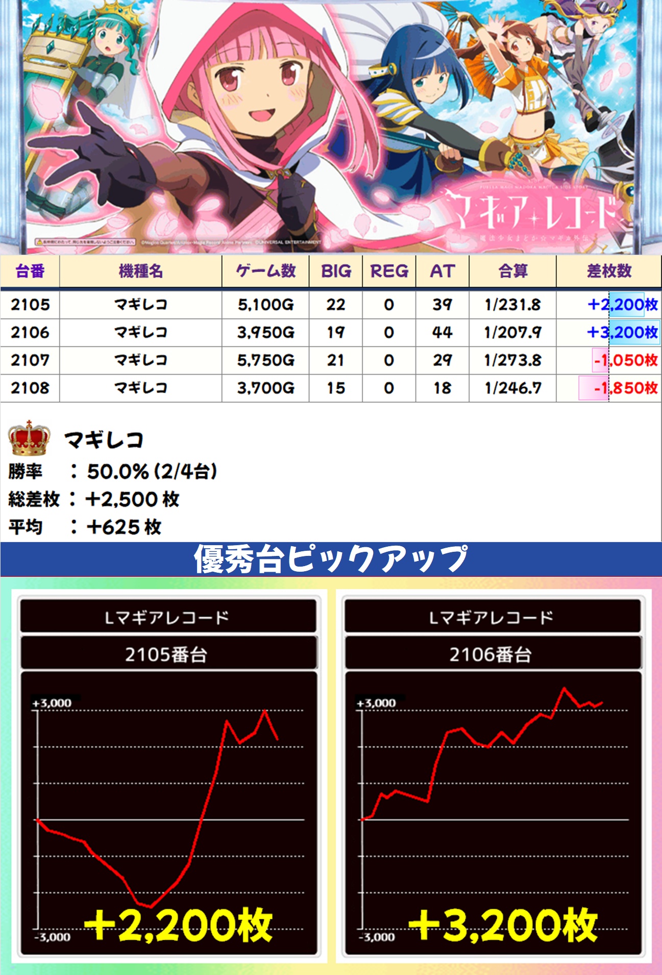 マギレコ(2/4台+)➡平均+625枚