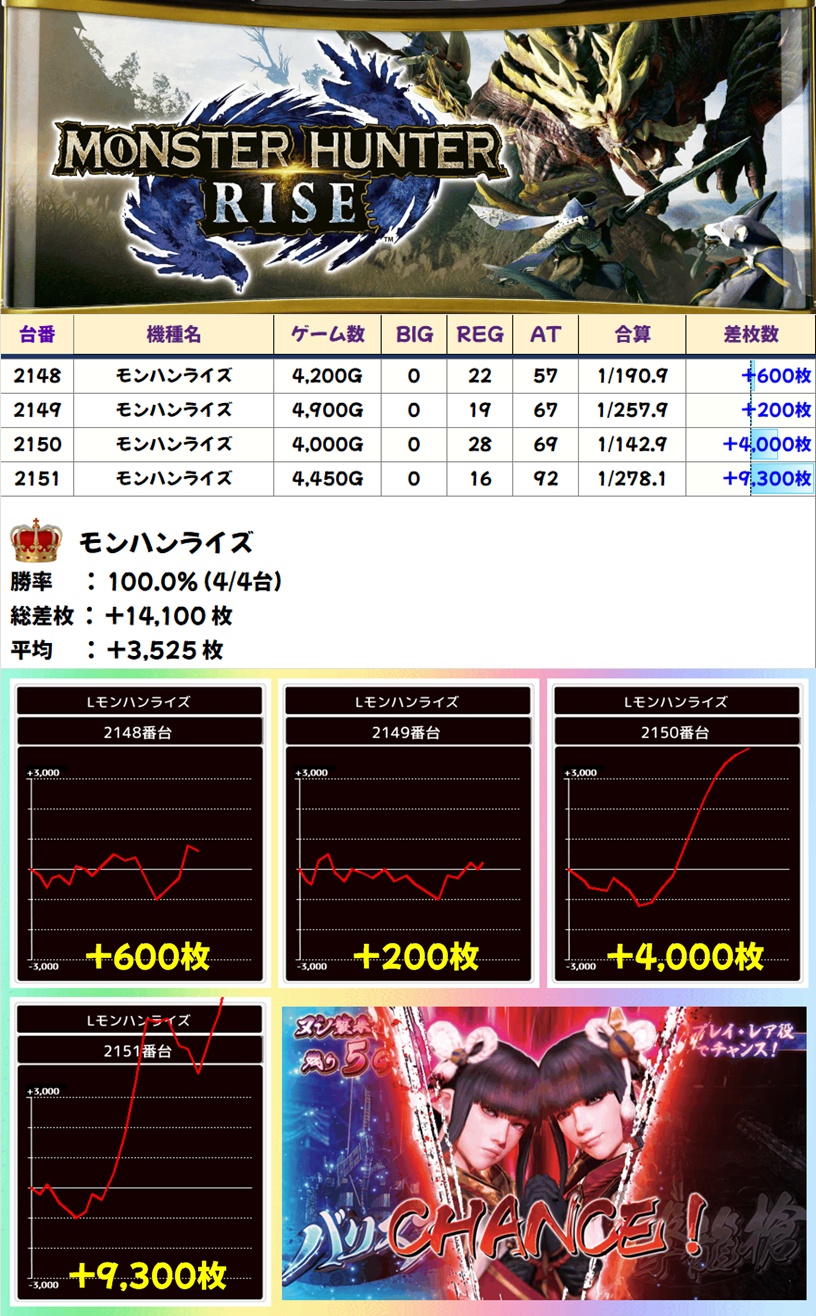 モンハンライズ(4/4台+)➡平均+3,525枚
