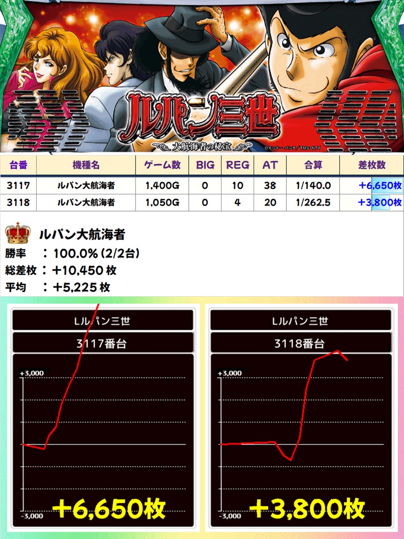 ルパン大航海者(2/2台+)➡平均+5,225枚