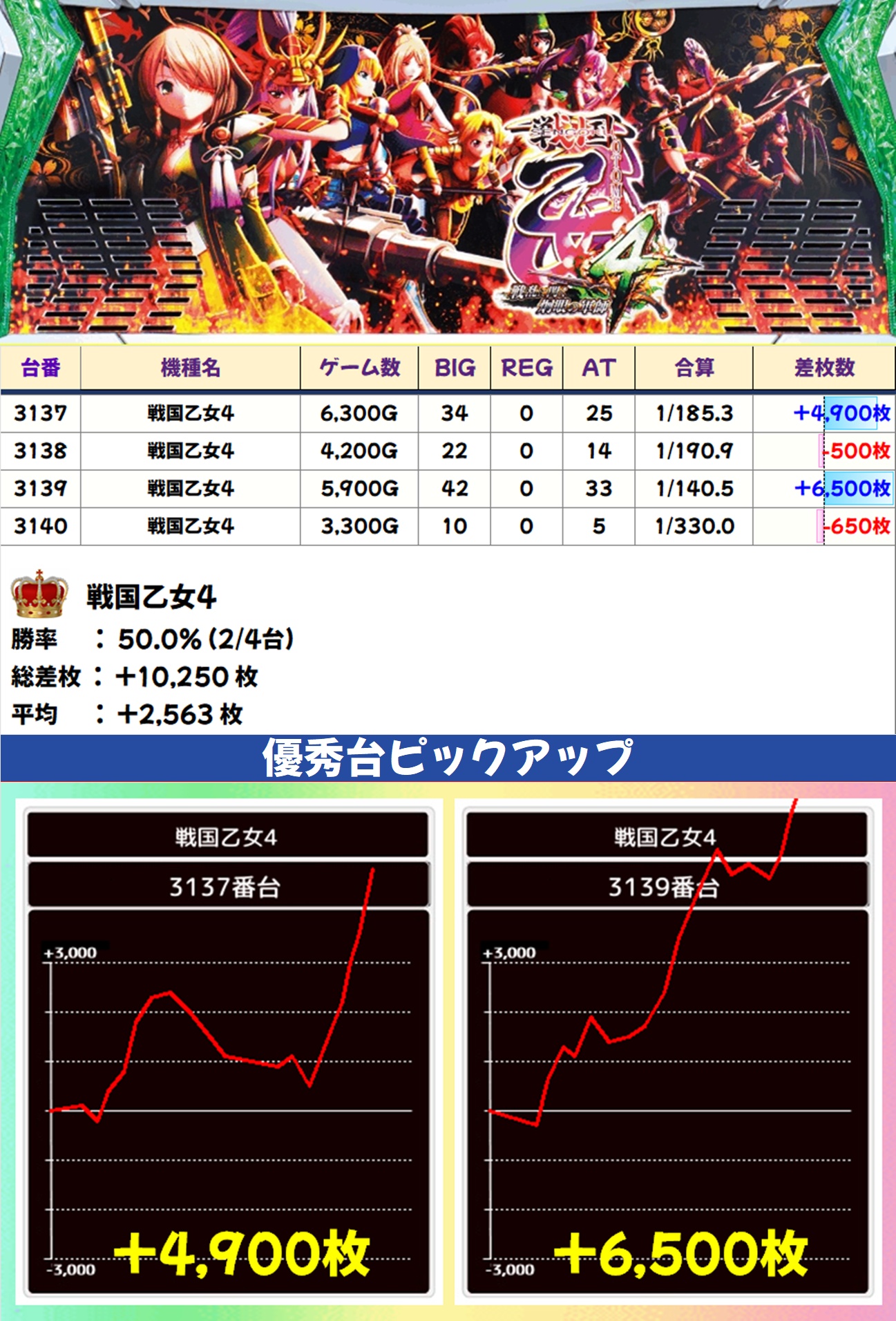 戦国乙女4(2/4台+)➡平均+2,563枚