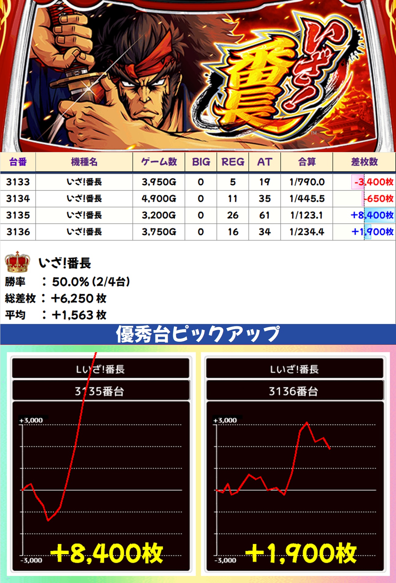 いざ!番長(2/4台+)➡平均+1,563枚