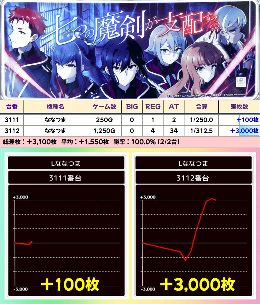 ななつま(2/2台+)➡平均+1,550枚