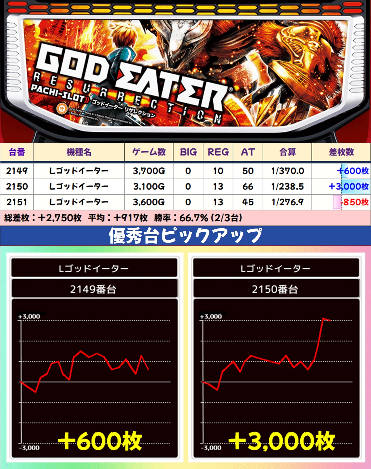Lゴッドイーター(2/3台+)➡平均+913枚