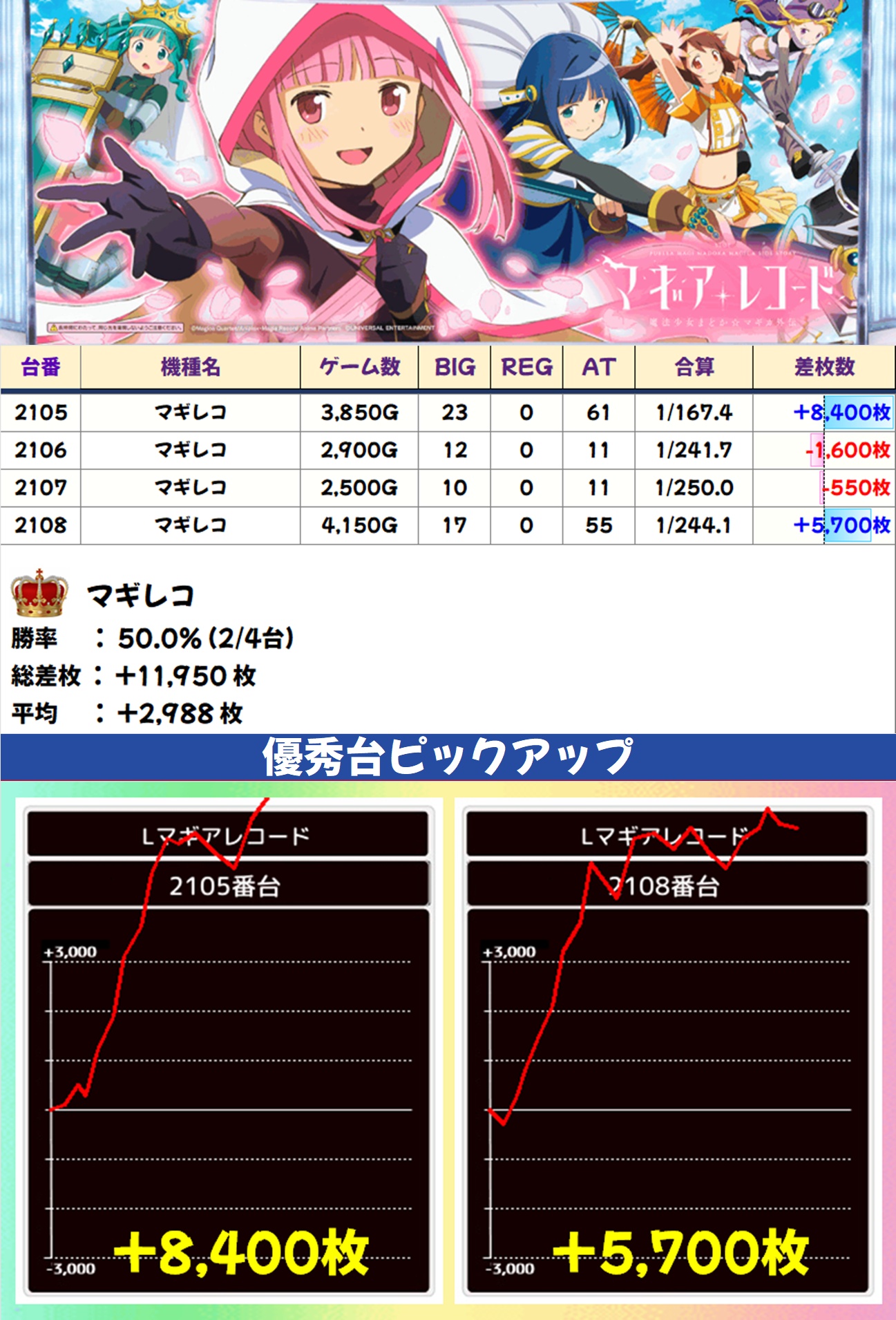 マギレコ(2/4台+)➡平均+2,988枚