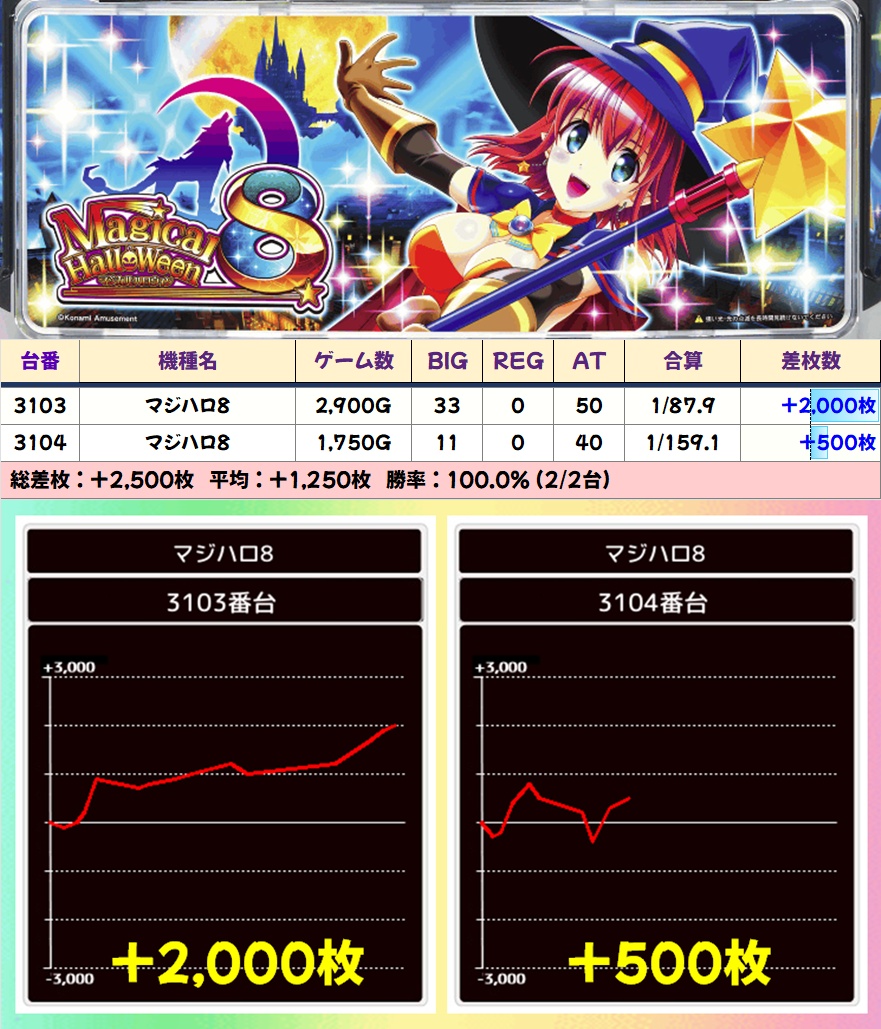 マジハロ8(2/2台+)➡平均+1,250枚
