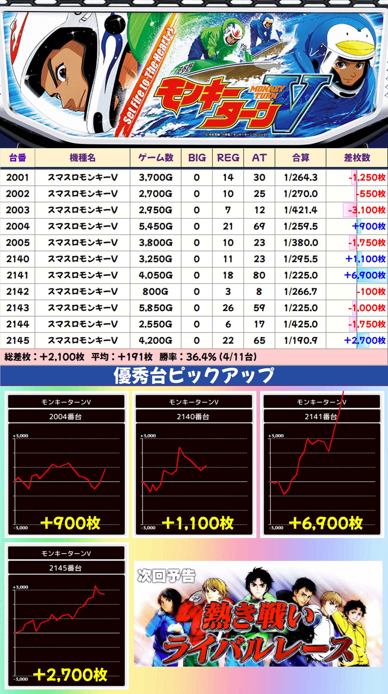 モンキーターンV(4/11台+)➡平均+191枚