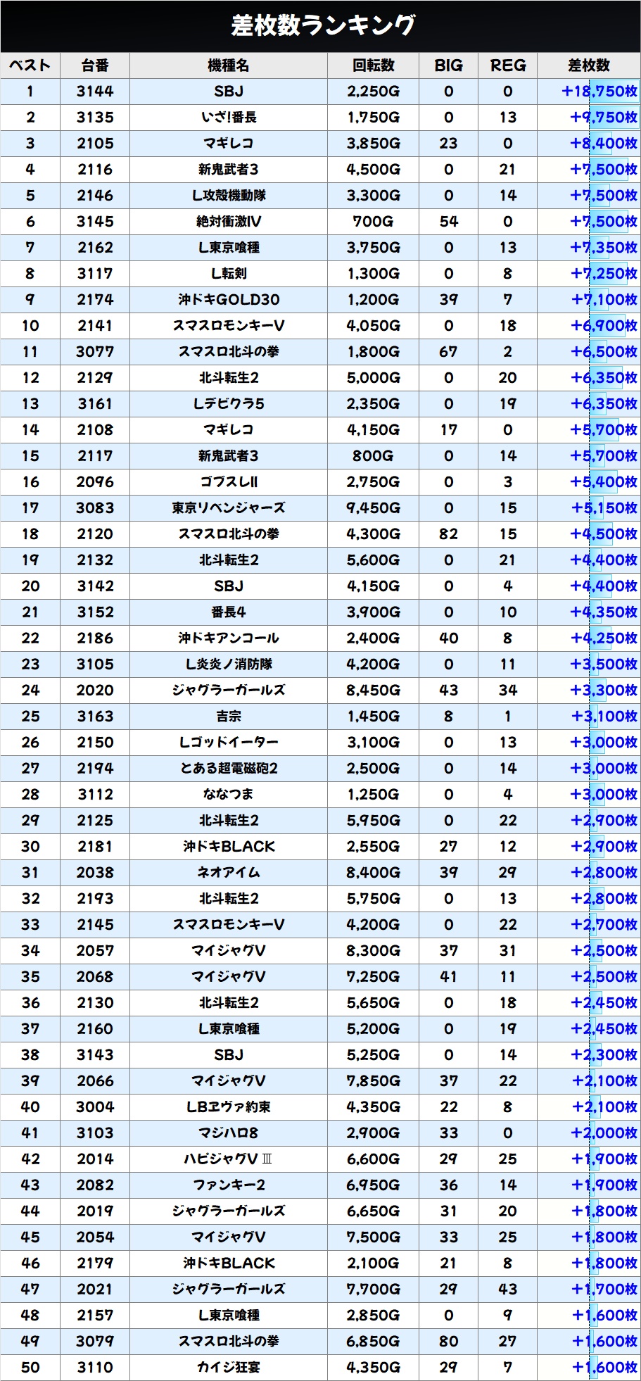 差枚数ランキングBEST50