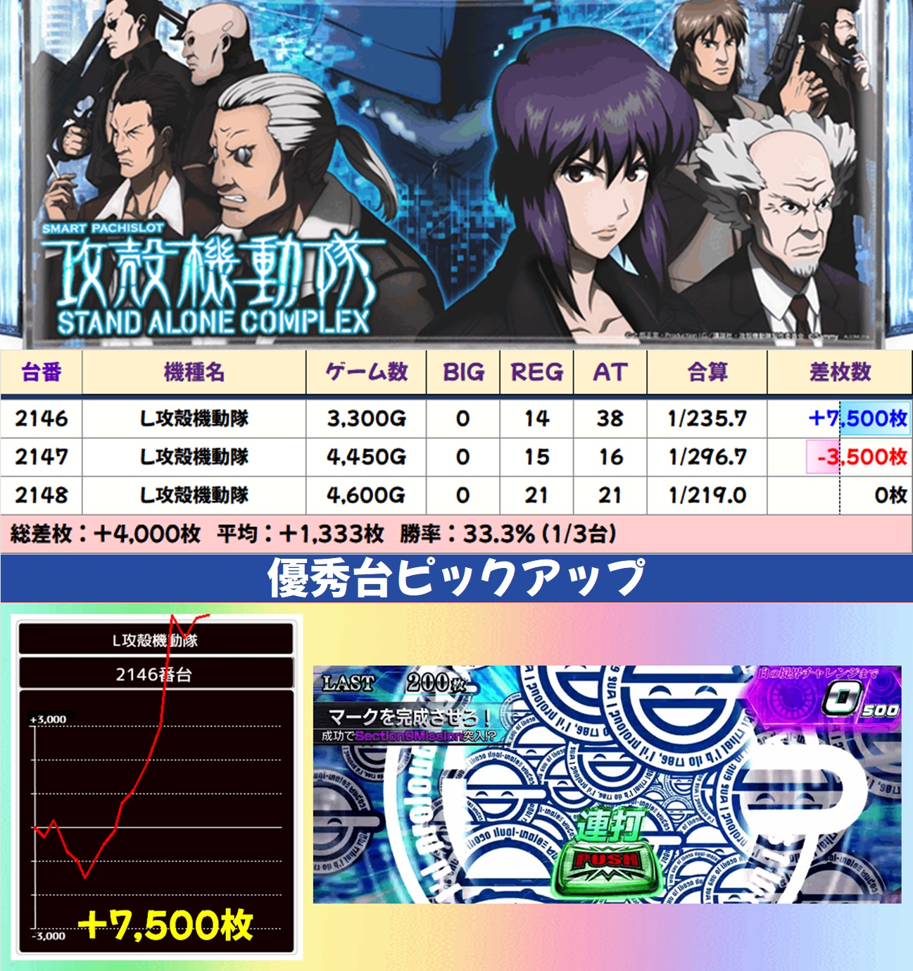 L攻殻機動隊(1/3台+)➡平均+1,333枚