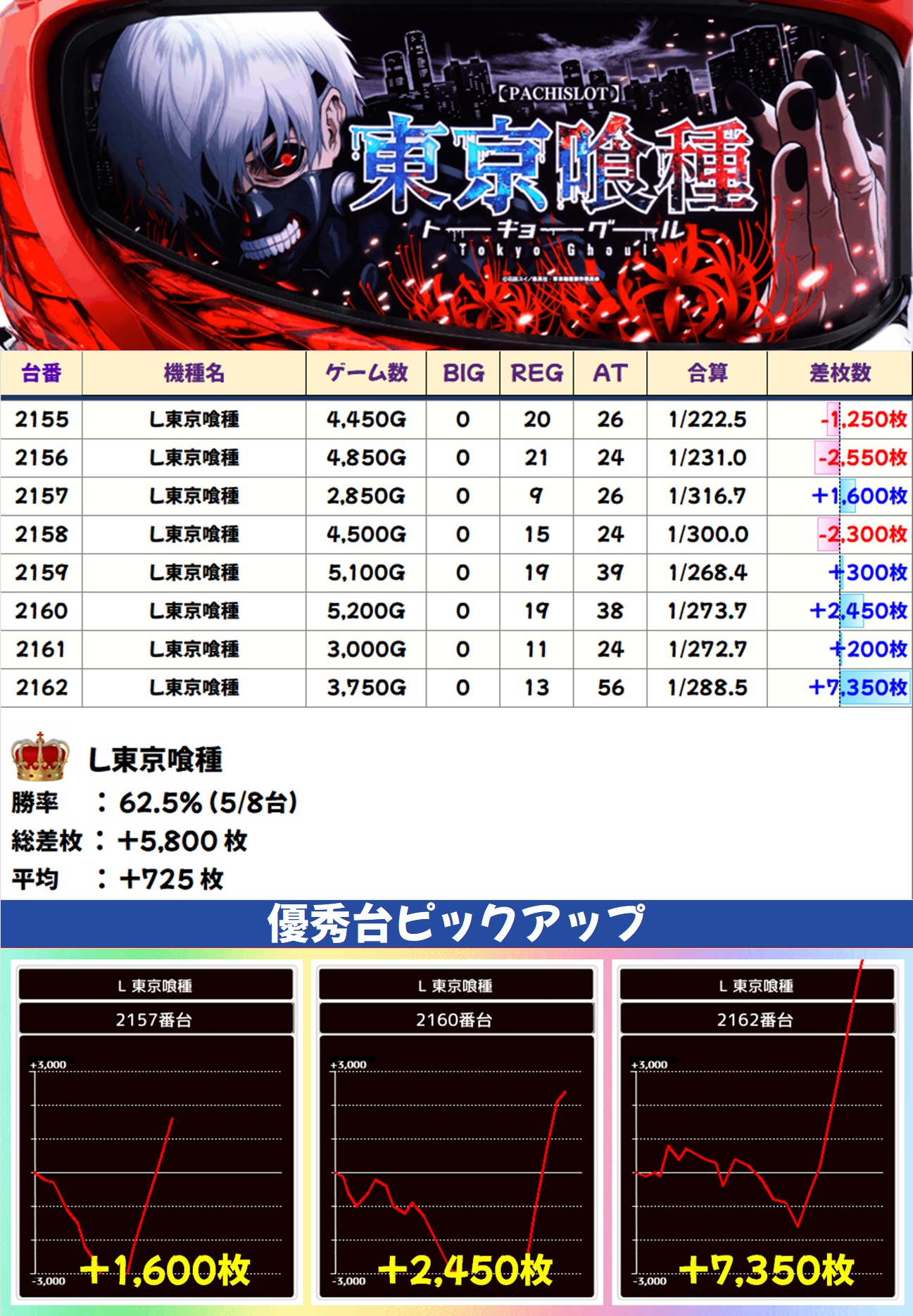 L東京喰種(5/8台+)➡平均+725枚