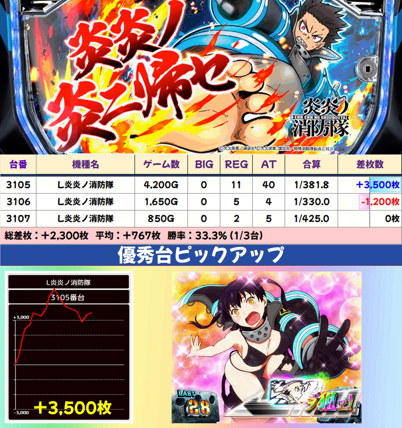 L炎炎ノ消防隊(1/3台+)➡平均+767枚