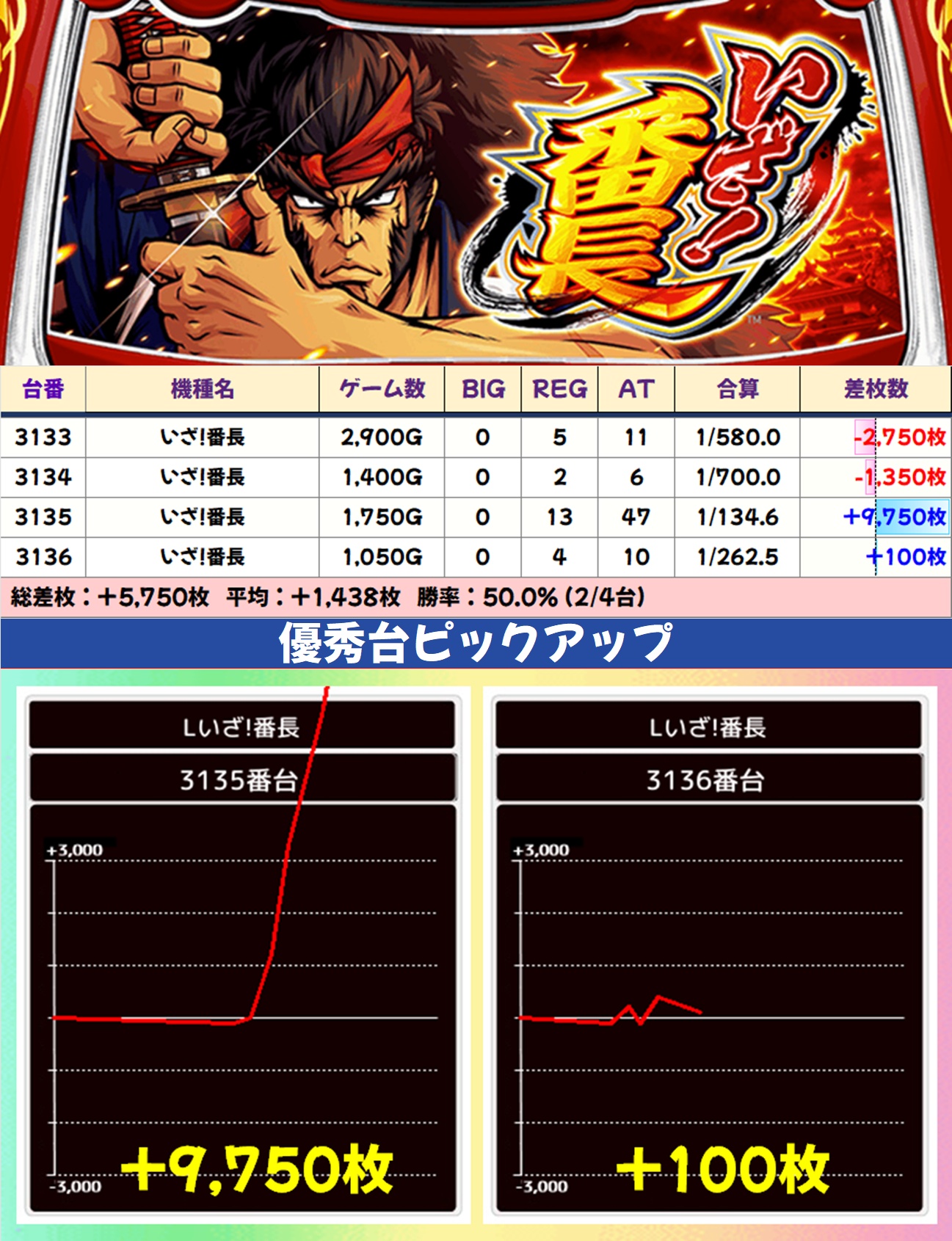 いざ!番長(2/4台+)➡平均+1,438枚