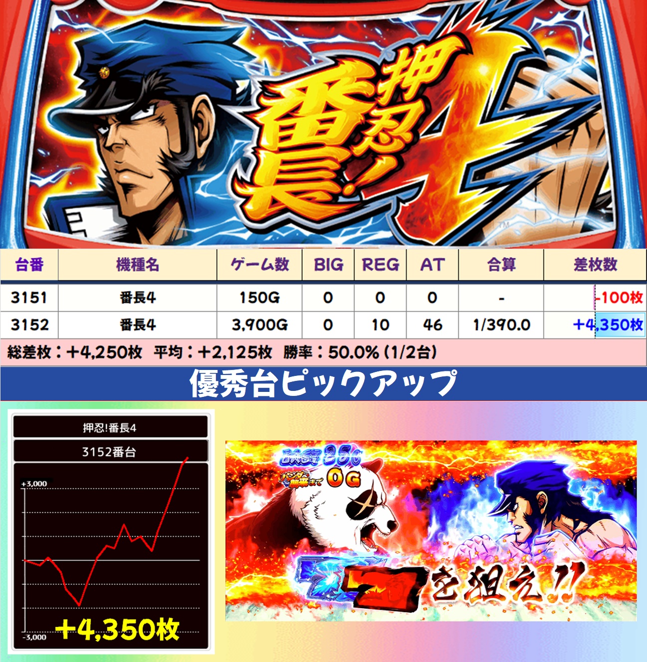 番長4(1/2台+)➡平均+2,125枚