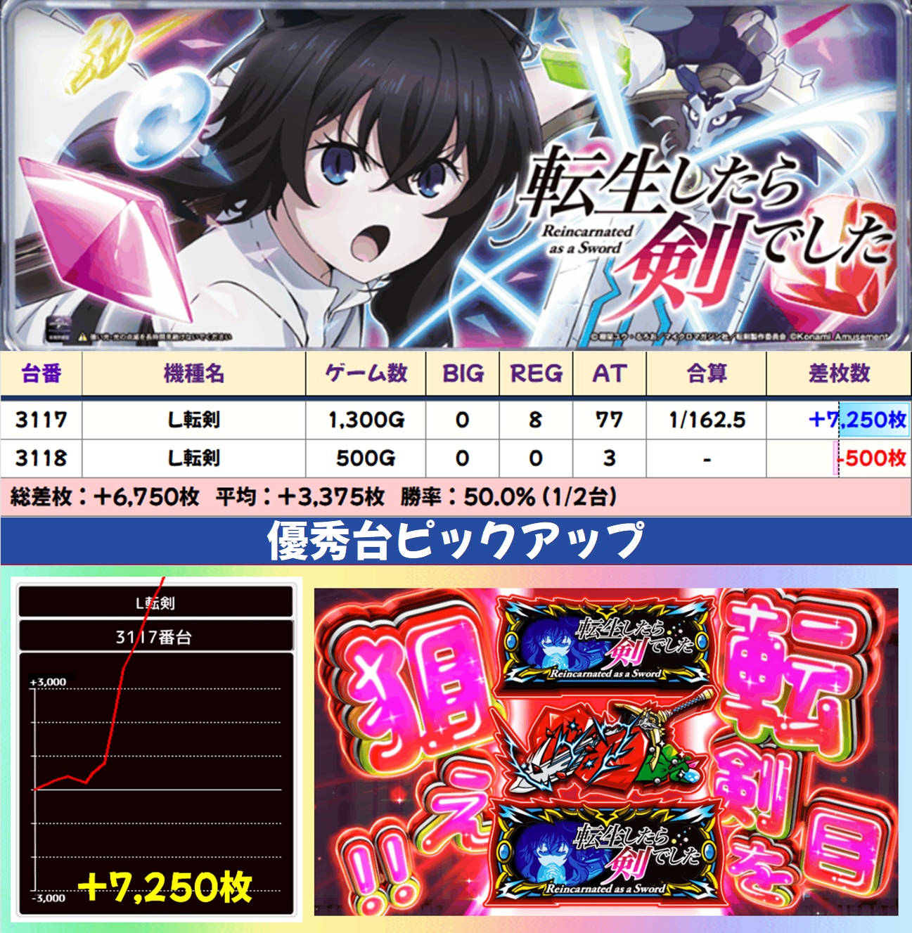 L転剣(1/2台+)➡平均+3,375枚