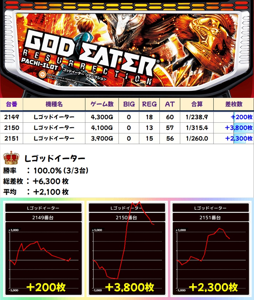 Lゴッドイーター(3/3台+)➡平均+2,100枚
