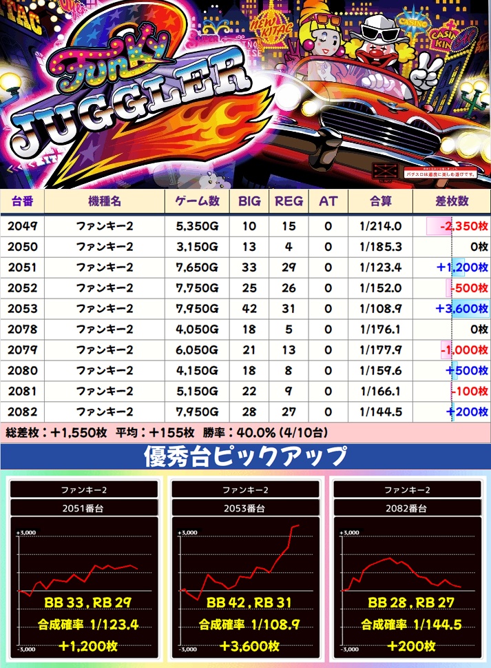 2053-2055 ファンキー2+マイV➡平均+2,633枚
