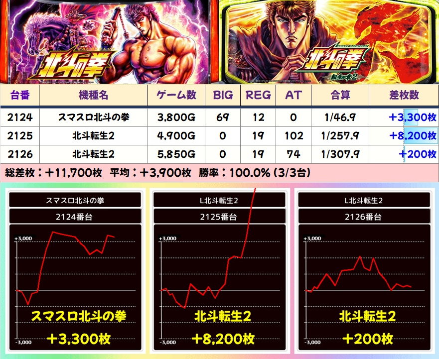 2124-2126 スマスロ北斗+北斗転生2➡平均+3,900枚