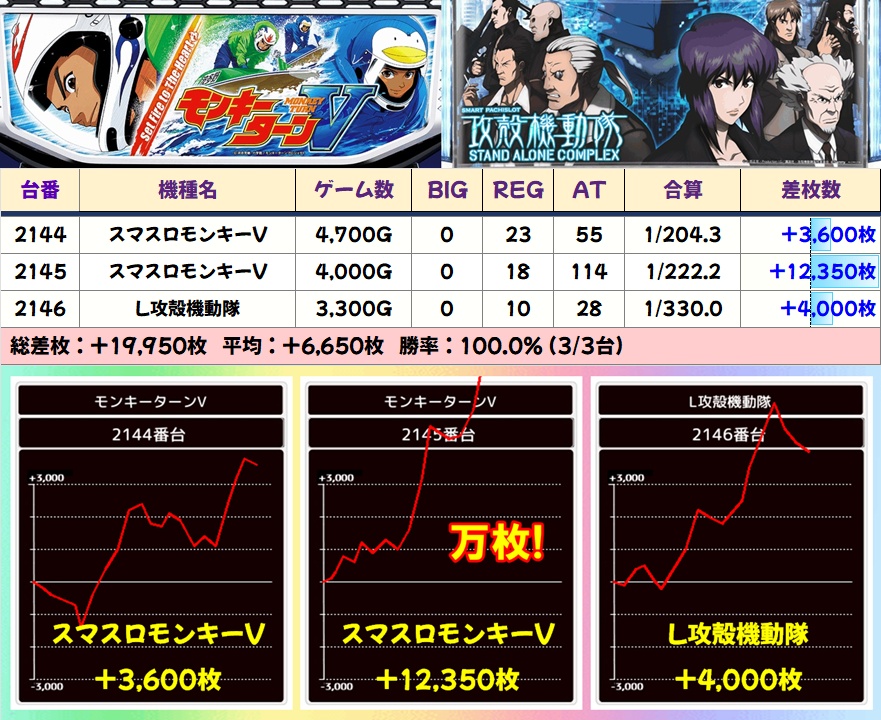 2144-2146 モンキーV+L攻殻機動隊➡平均+6,650枚