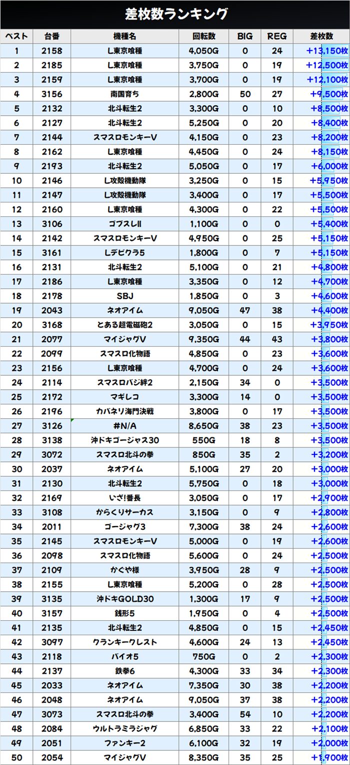 差枚数ランキングBEST50