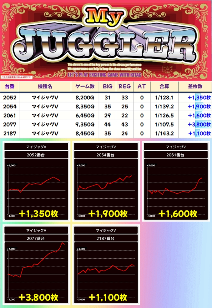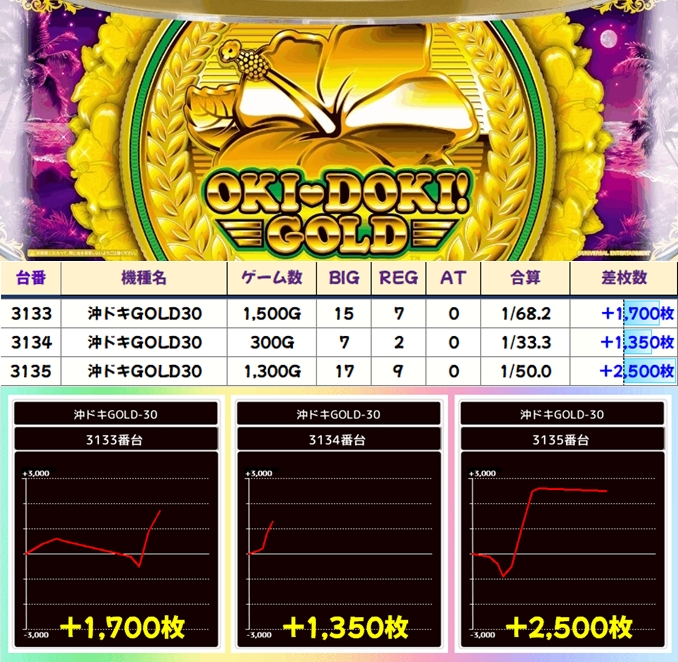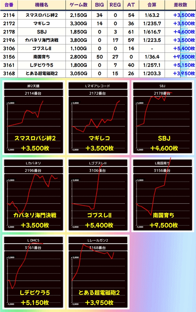 上記でまとめた仕掛け箇所以外にも+2,000枚オーバーの優秀台が続出。仕掛け外の機種にもチャンスは間違いなくありましたよ!