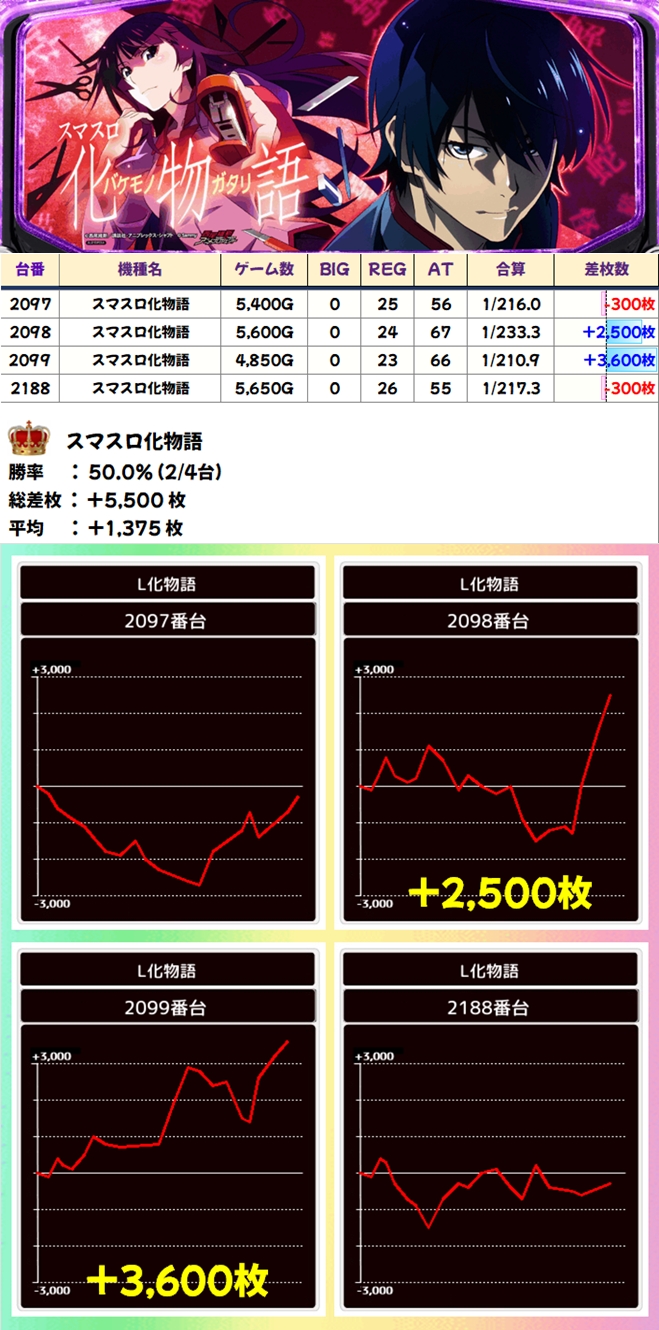 スマスロ化物語(2/4台+)➡平均+1,375枚