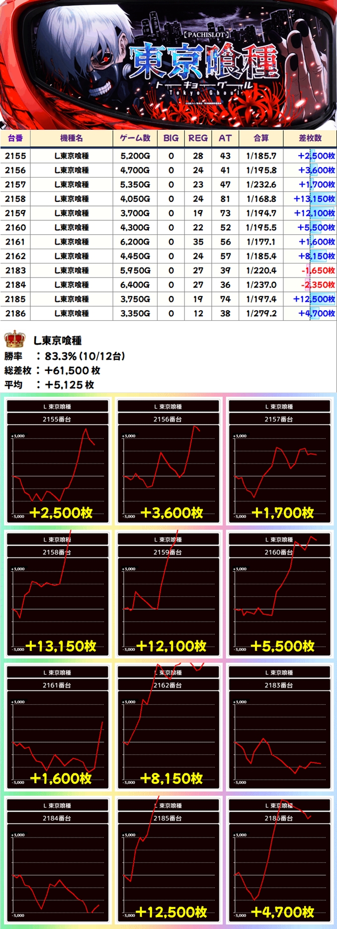 東京喰種(10/12台+)➡平均+5,125枚