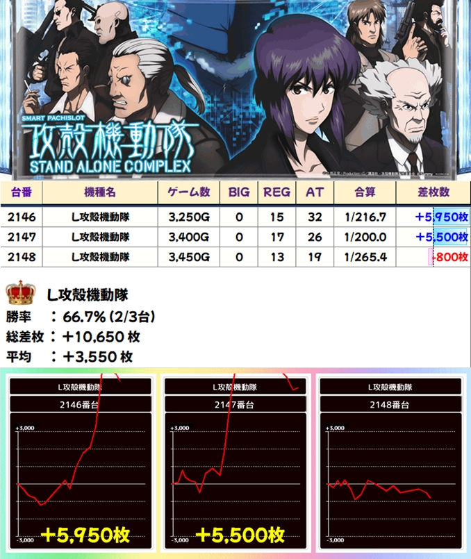 攻殻機動隊(2/3台+)➡平均+3,550枚