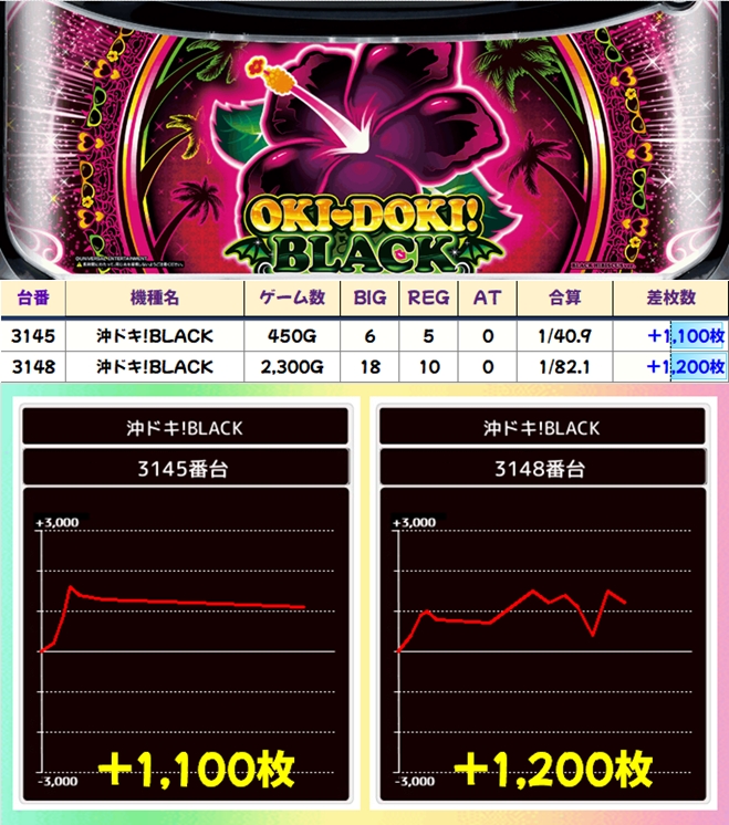 沖ドキBLACK(3/4台+)➡平均+413枚