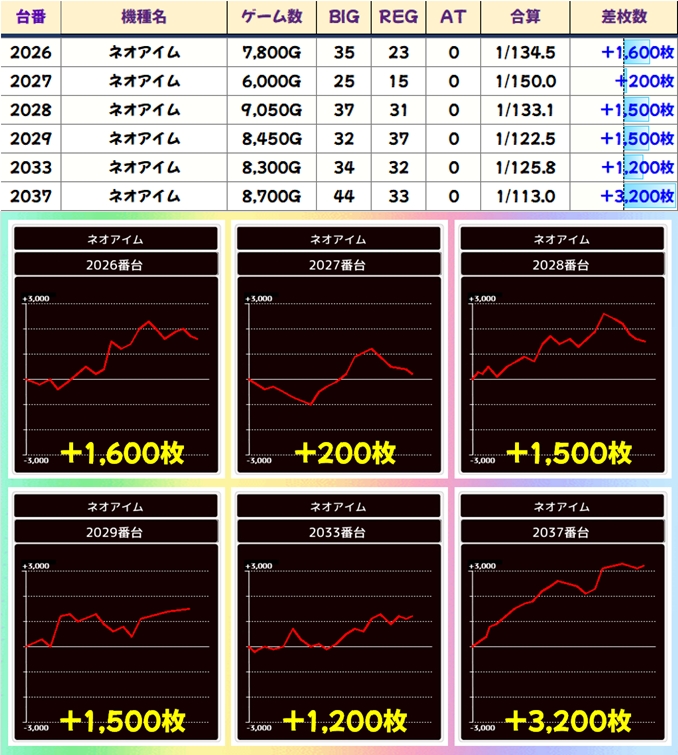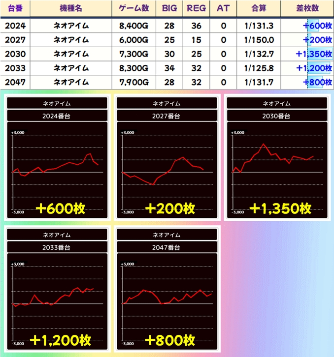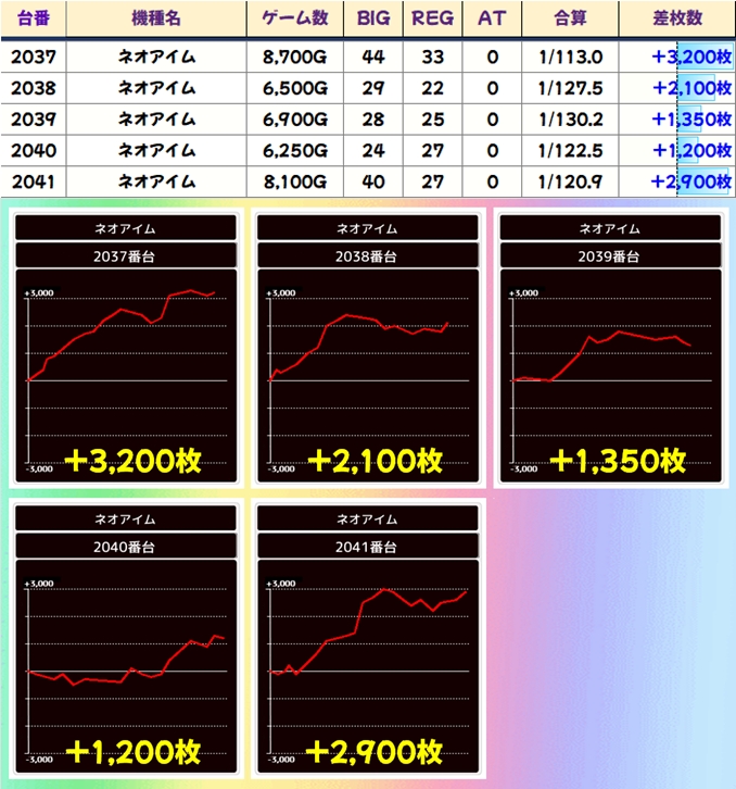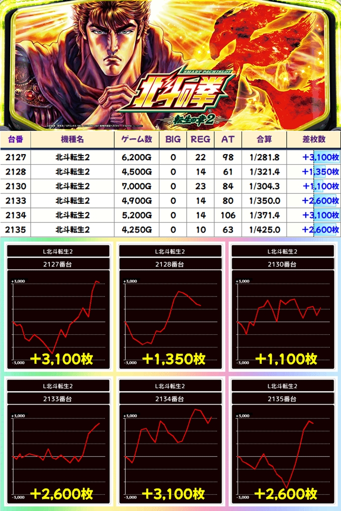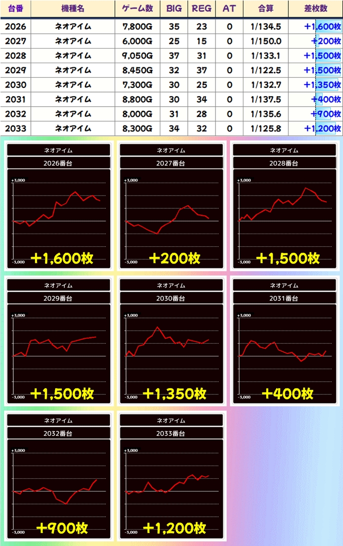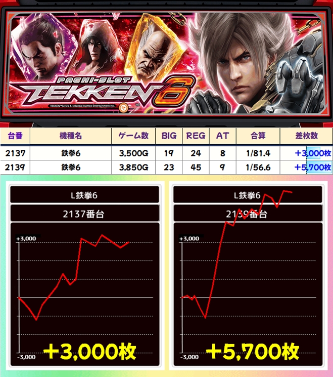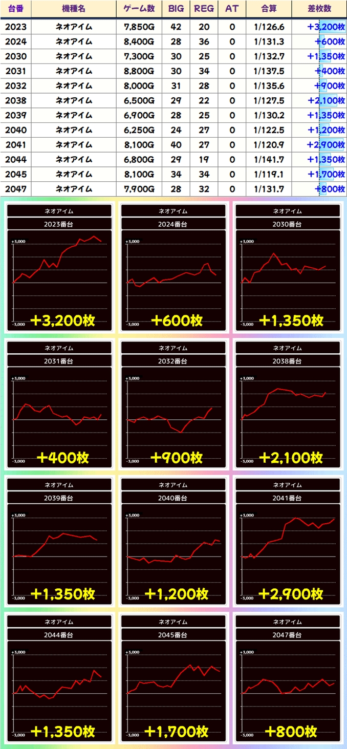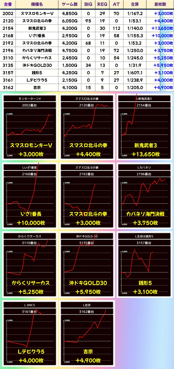 今回も豊富な仕掛けで優秀台が続出し、30台が+3,000枚オーバー!