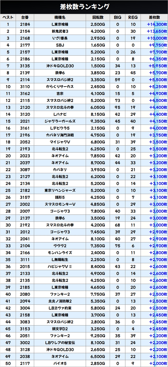 差枚数ランキングBEST50