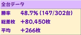 この日の結果は総差枚+8万枚、台平均+260枚オーバーの好成績。前日の裏パスでも総差枚8万枚超だったので、2連続で+8万枚超を叩き出しました!