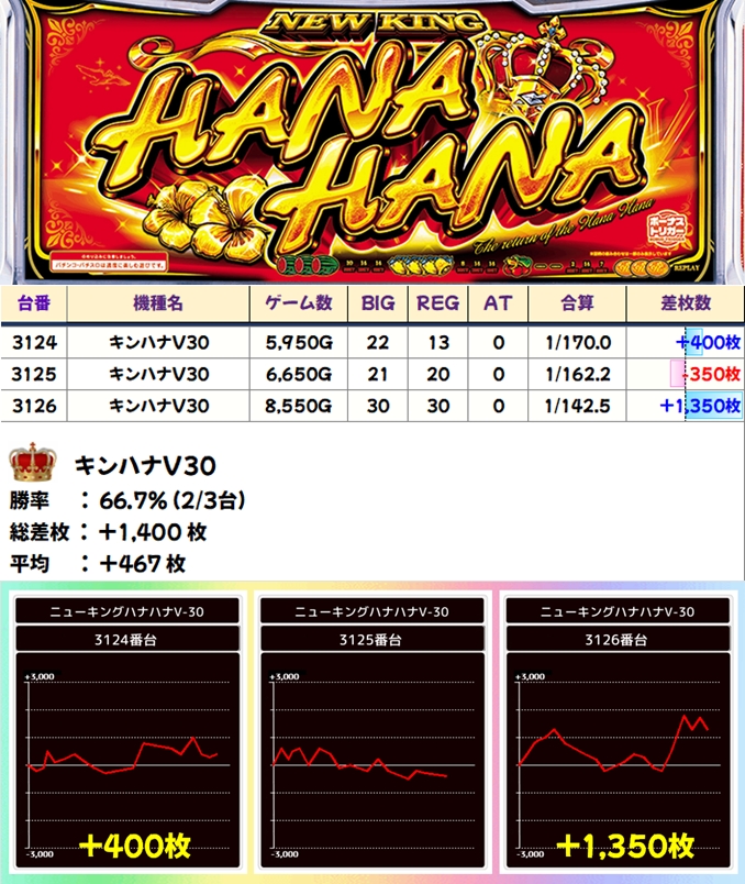 キンハナV(2/3台+)➡平均+467枚